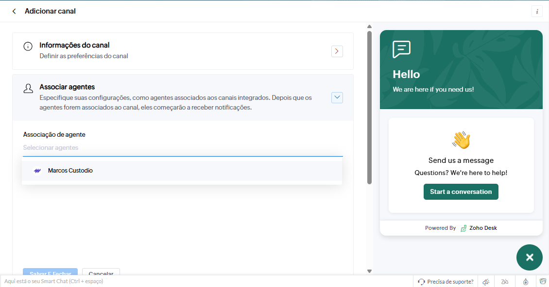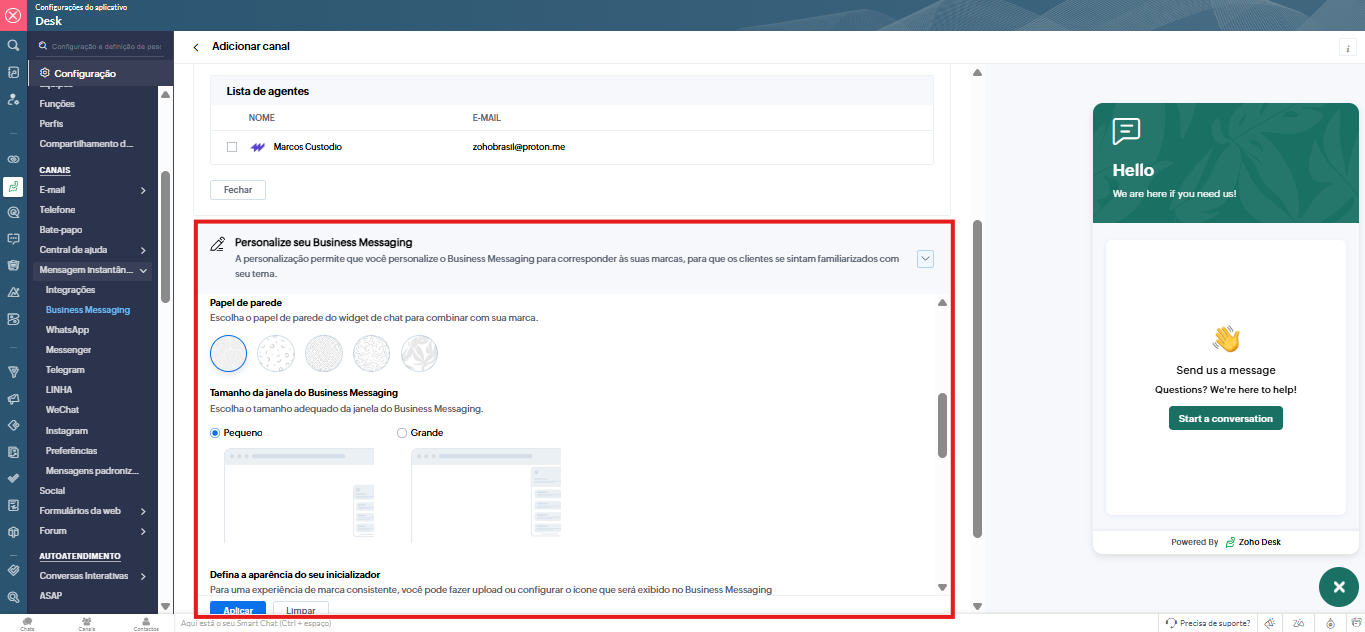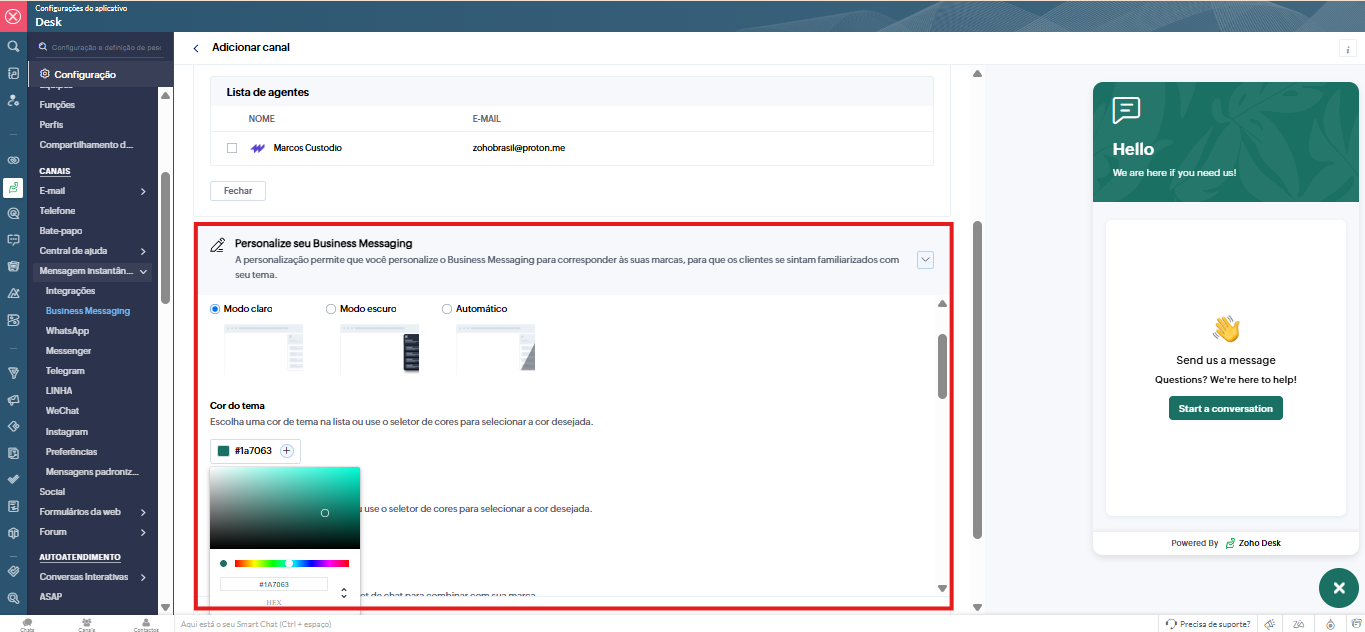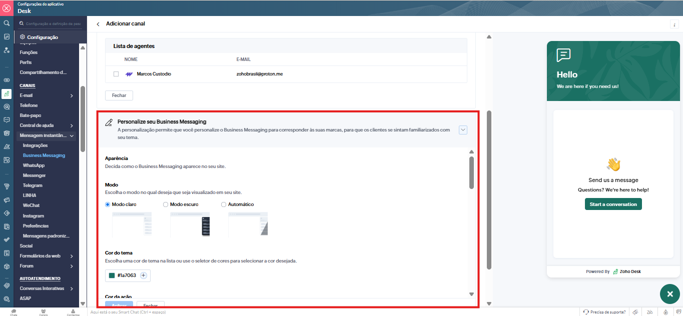 Ative “Powered by Zoho Desk” se desejar exibir a marca.