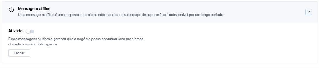 Use a barra de alternância para desativar a opção Ativar (mensagem de boas-vindas ou offline).