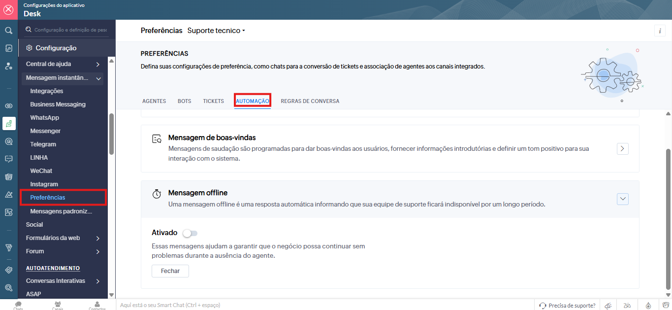 Ao configurar mensagens offline, você resolve um dos principais motivos de insatisfação do cliente no atendimento: enviar uma mensagem e não receber uma resposta em um período de tempo aceitável.