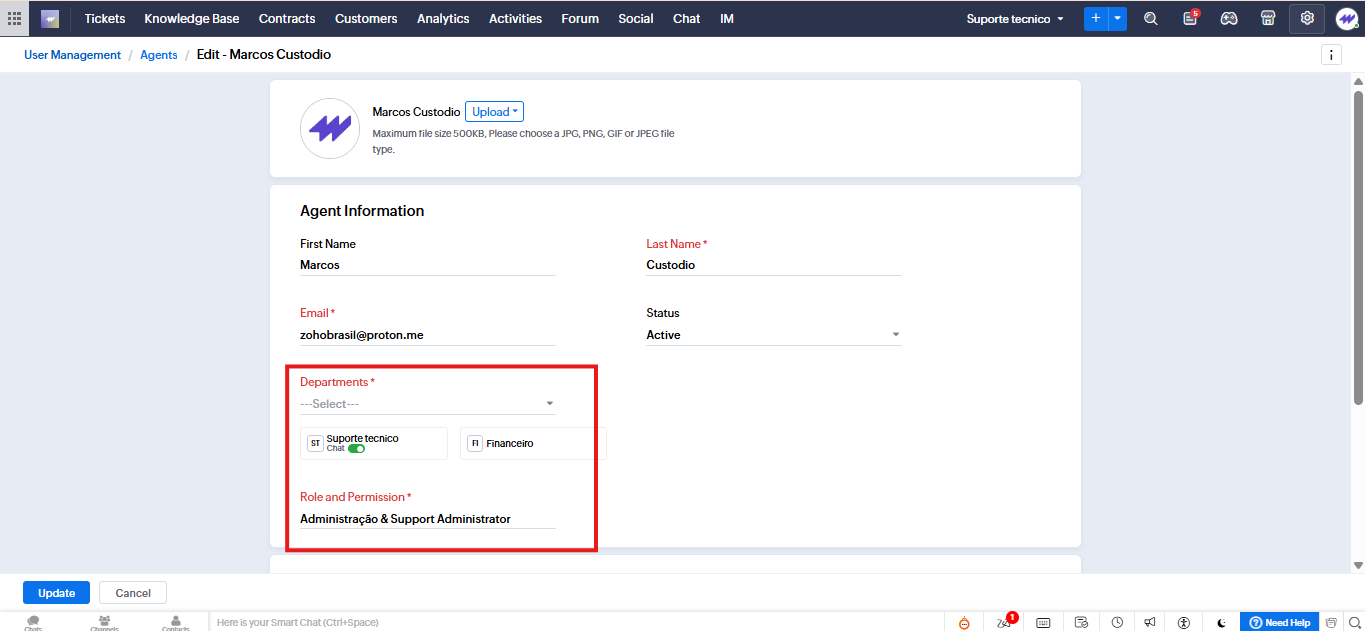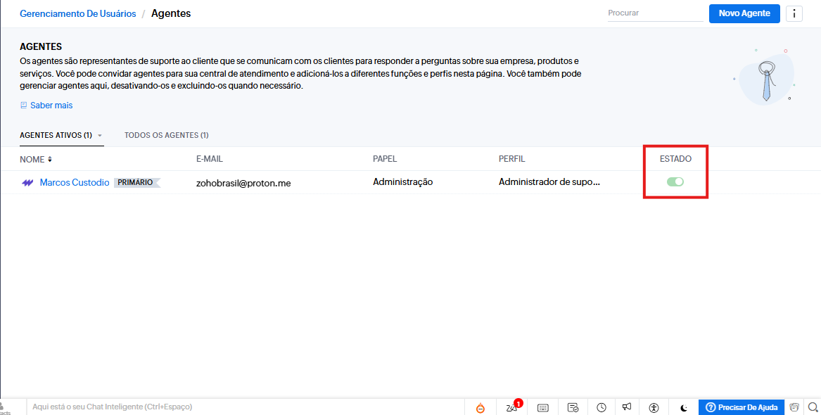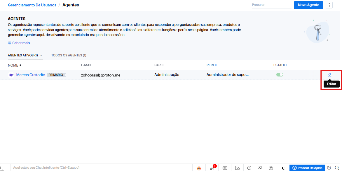 Acesse Configuração → Gerenciamento de usuários > Agentes → Selecione o agente.